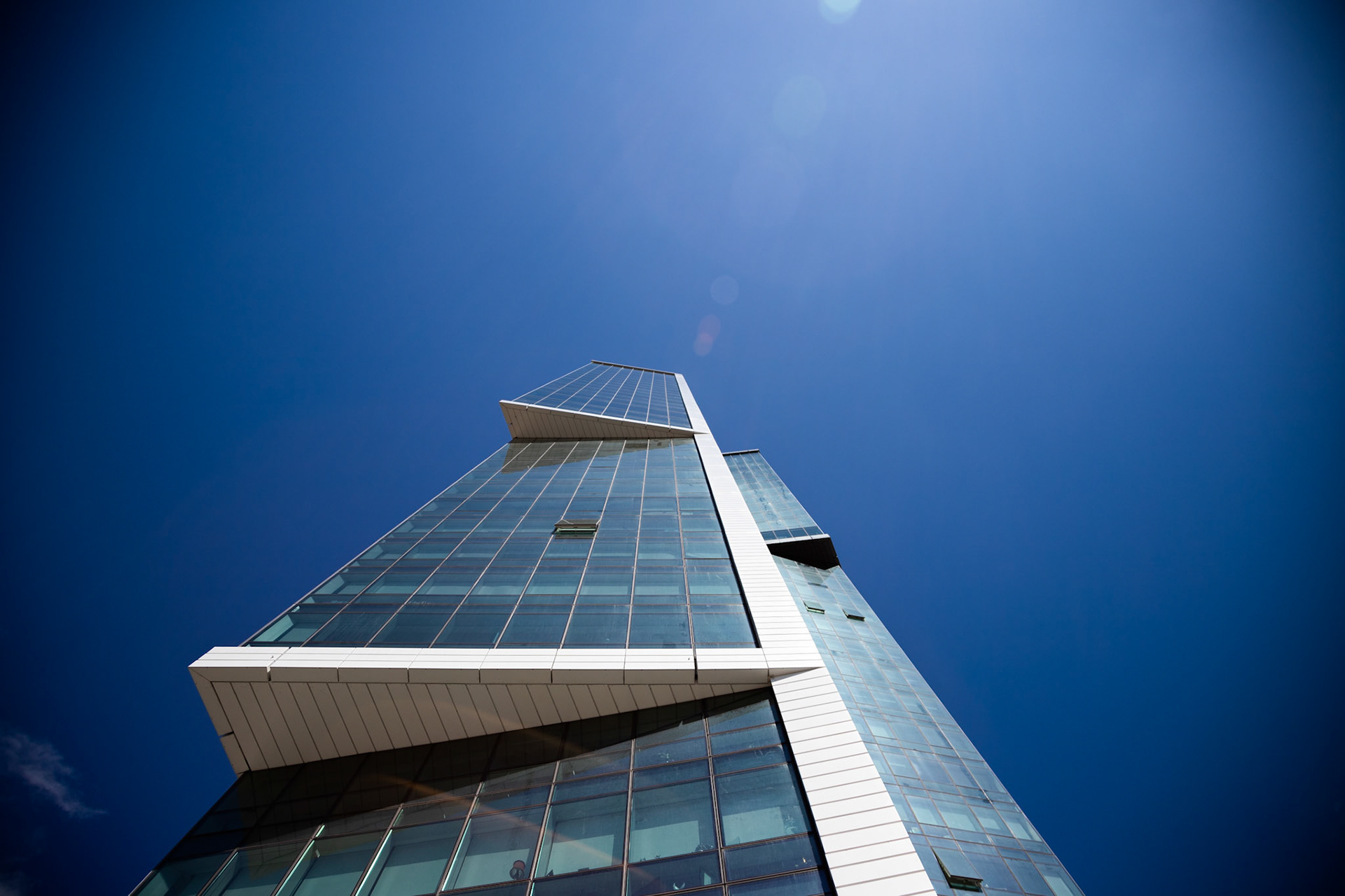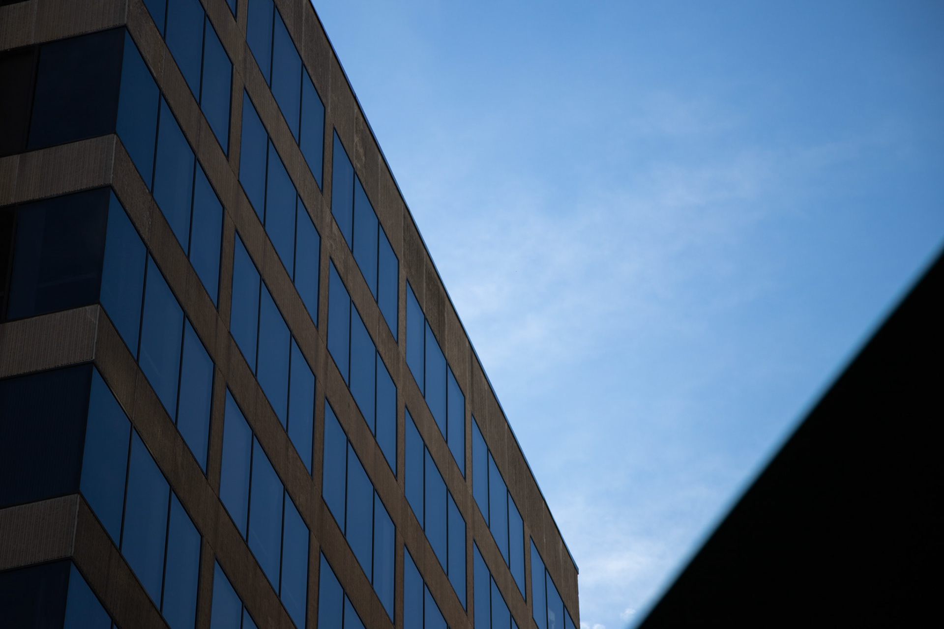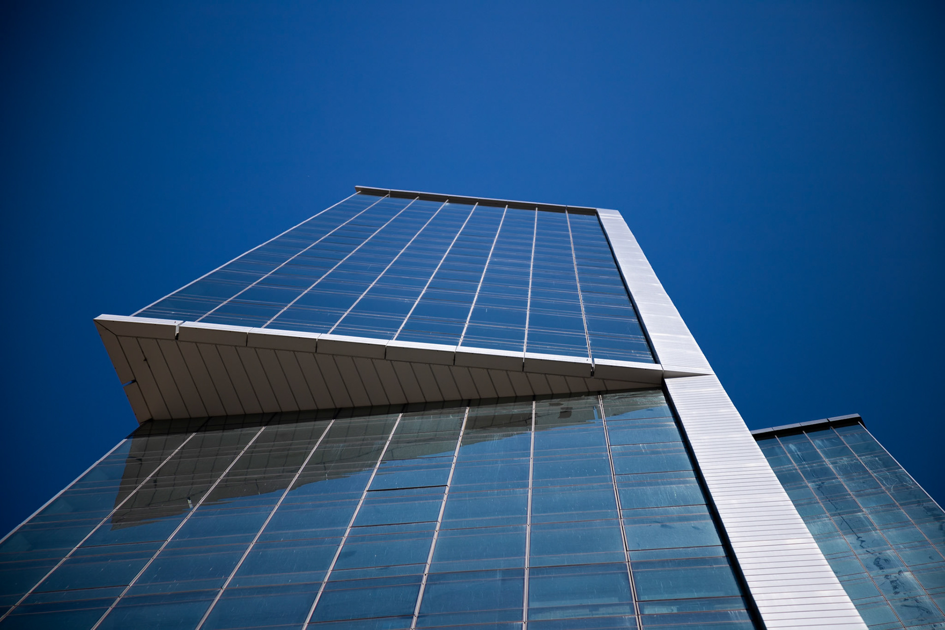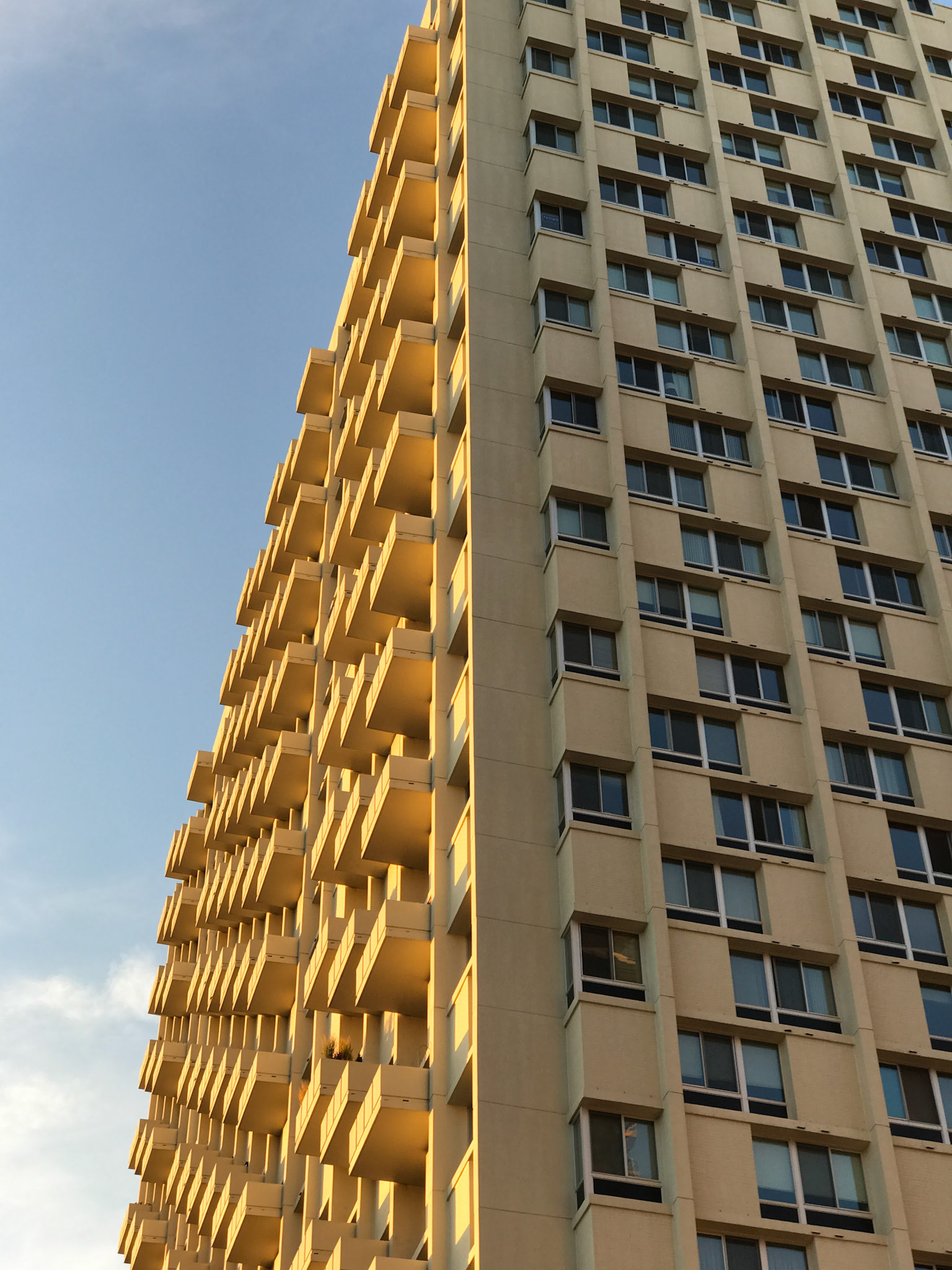 Buildings, windows, sky. As much about the architecture as the shapes, forms, and space that they occupy.