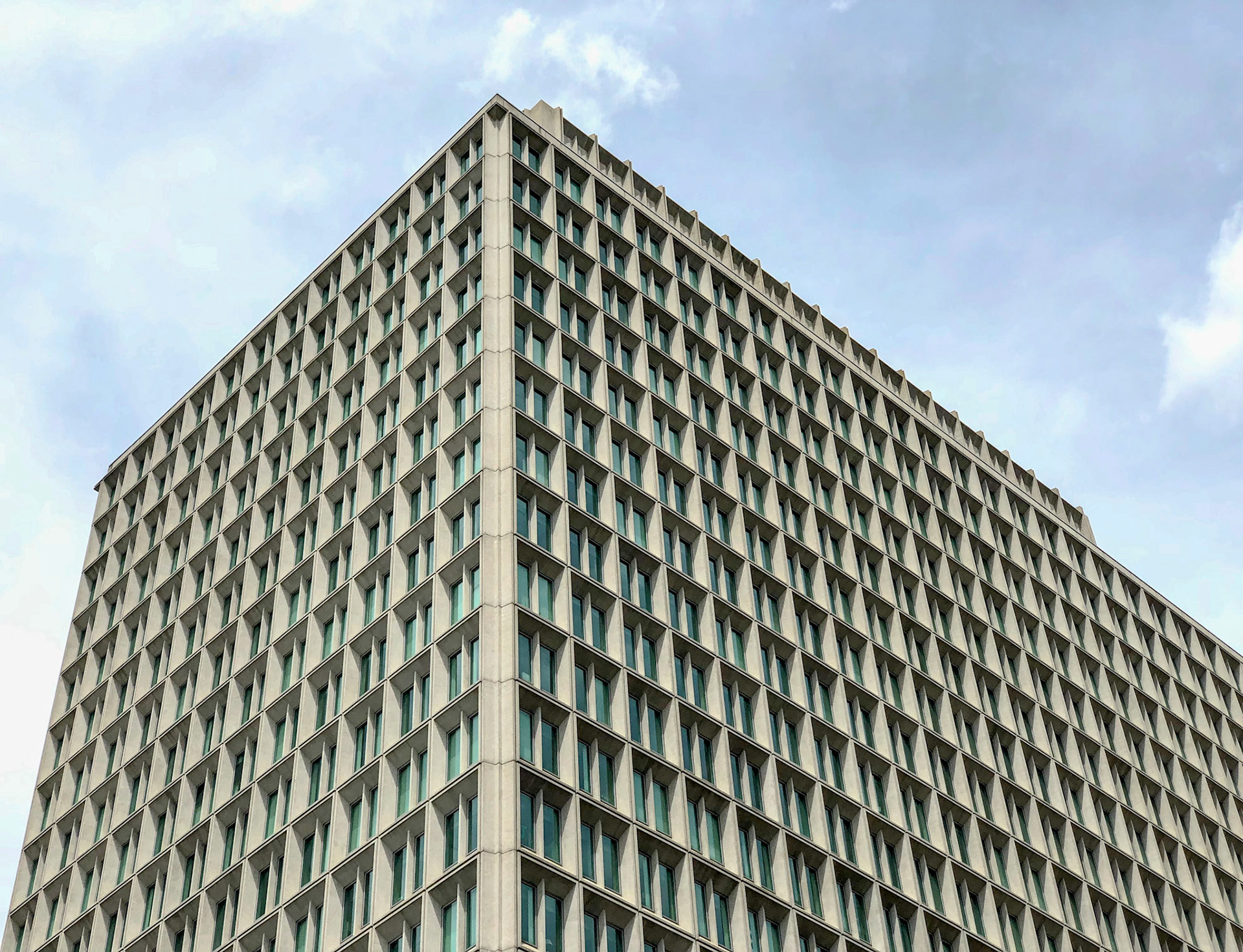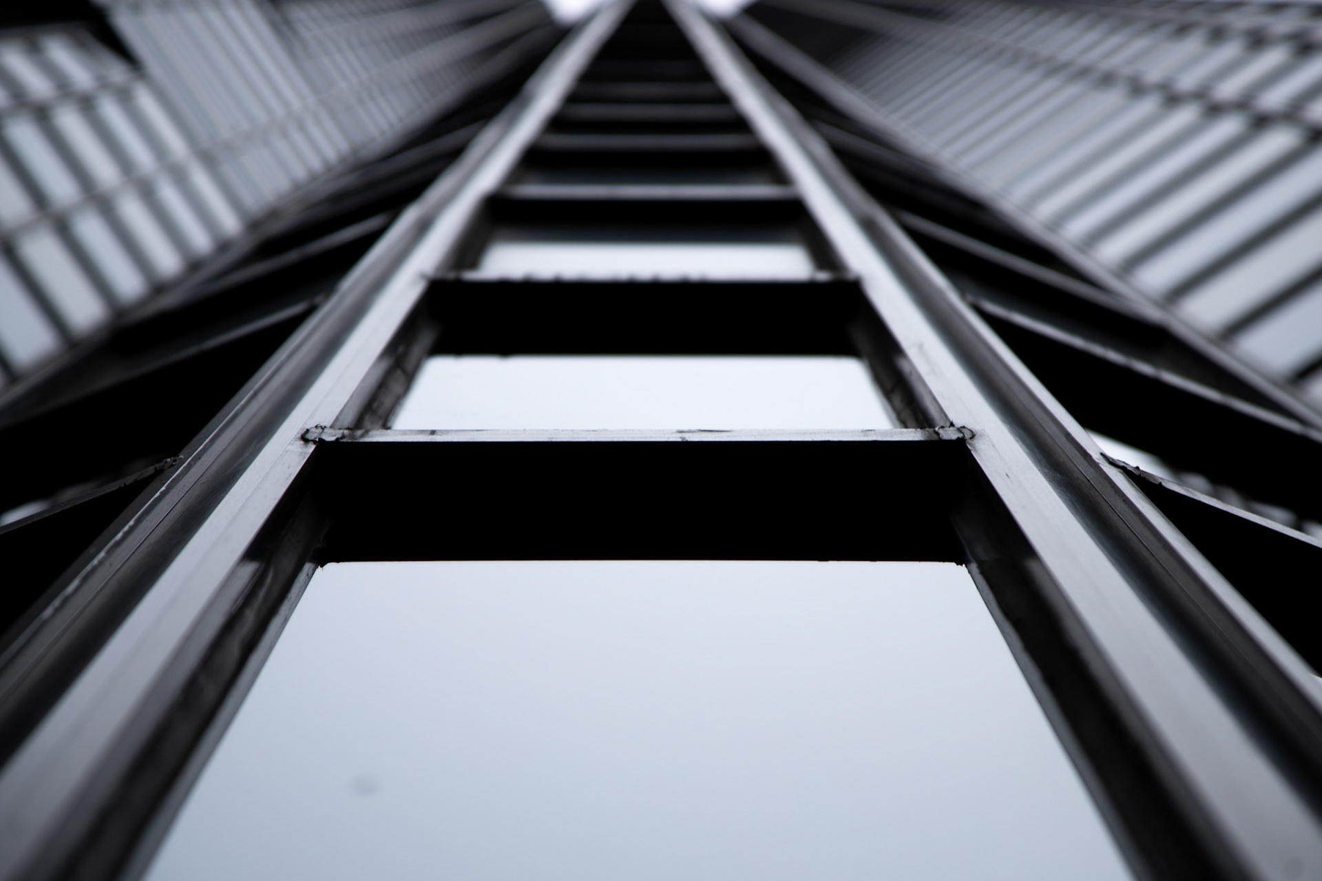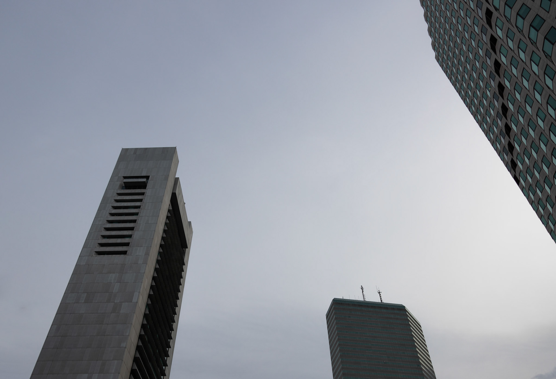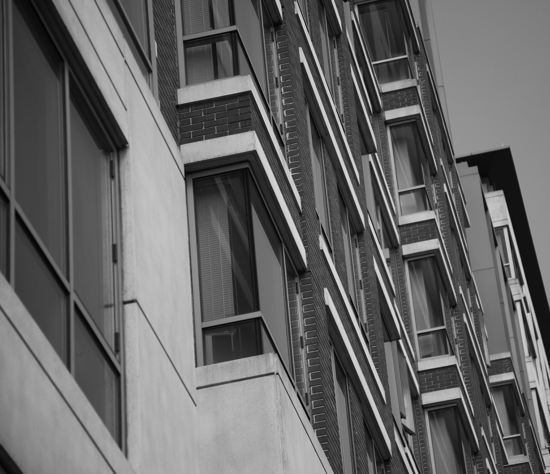 Buildings, windows, sky. As much about the architecture as the shapes, forms, and space that they occupy.
